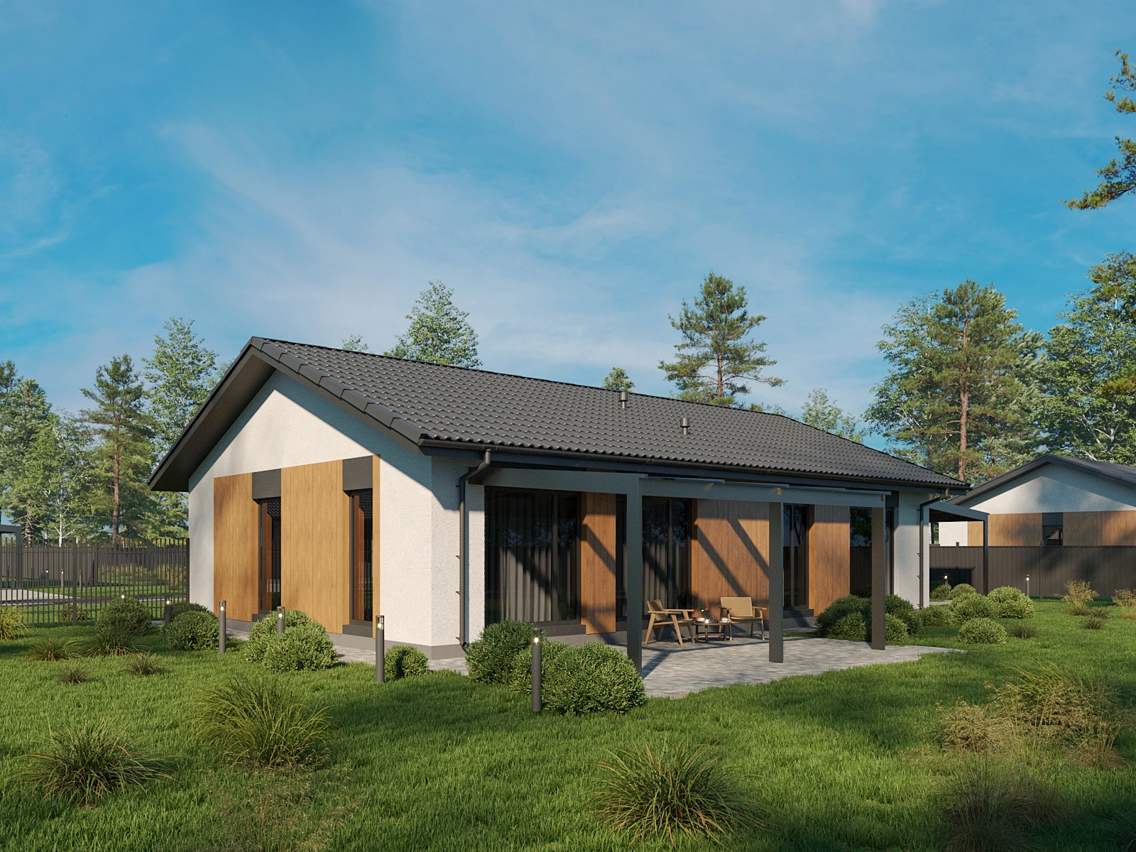 - Забор - высота по фасадной части 1,5м, по периметру 1,7м