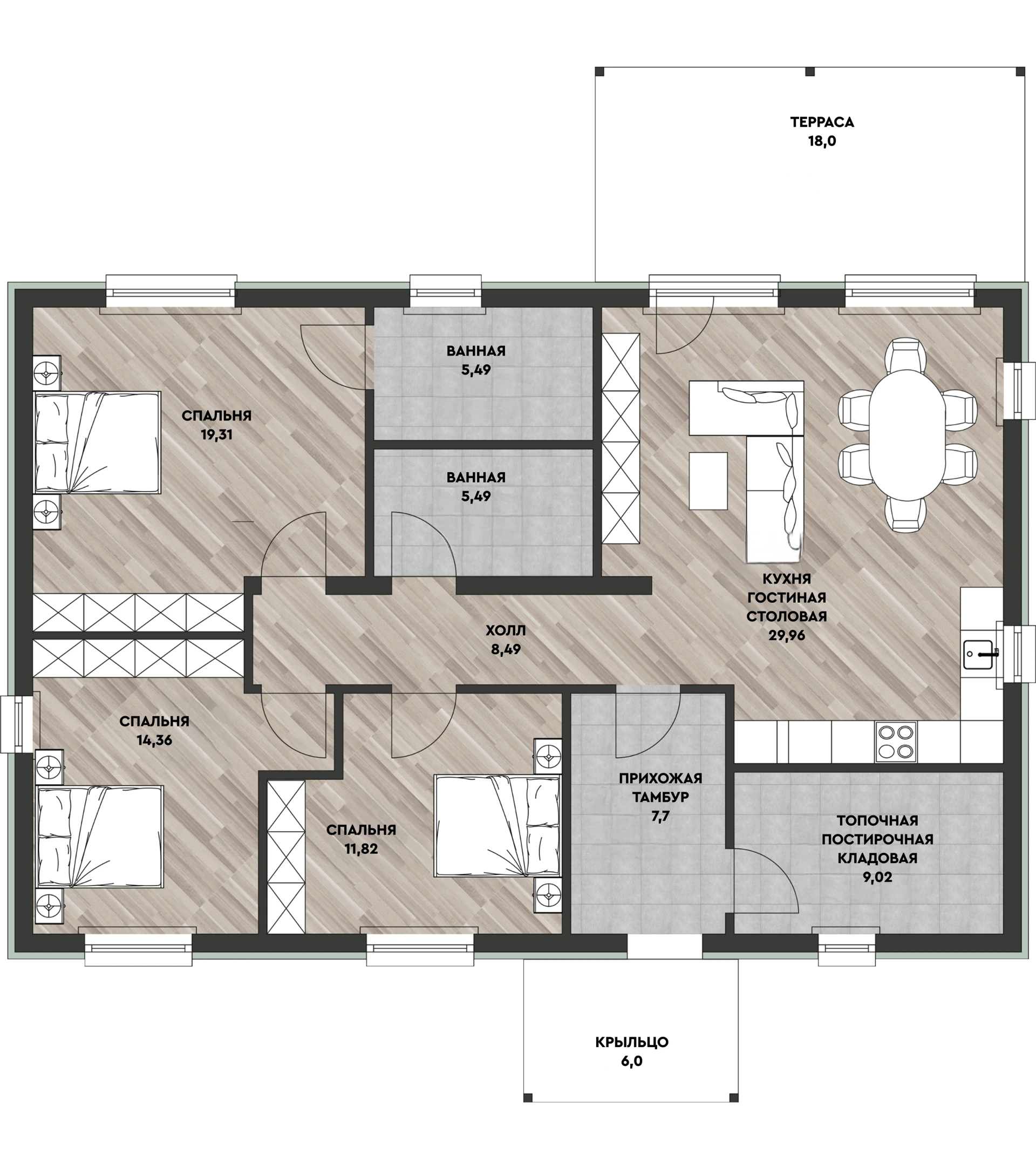 Габариты дома: 14,39 х 9,51 m